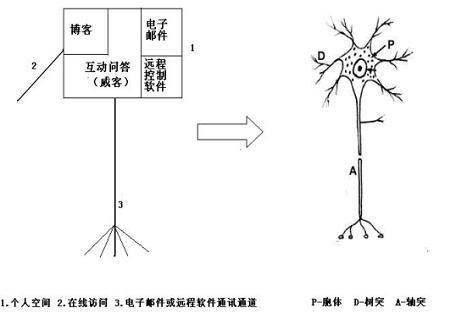 在相關論文中,我們也繪制了更為詳細的互聯網映射型虛擬神經元,它是以目前互聯網個人空間應用為基礎,擴充并預言了成熟后的互聯網神經元結構。