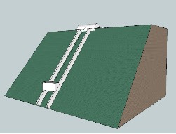 如上圖所示:軌道上建一滑動三角平臺,以牽引索與上方滑輪相接;滑輪設計成類似汽車無級變速式任意可調比例。滑輪另一方坑道中綴以重物,來往車輛開上平臺后,上方滑輪調整比例使車輛加平臺重量形成斜面拉力與重物在另一端的滑輪調整后拉力大致相等。開動小功率電機,迅速把車輛拉上山頂,鎖定纜索滑輪另一端重物有所下降。相反車輛下山時反向操作即可,這樣就通過滑輪和重物把車輛來回的能量相互轉換,完成幾乎不耗爬山能量的運輸交通,只付出很小部分摩擦阻力的功。和平路一樣。