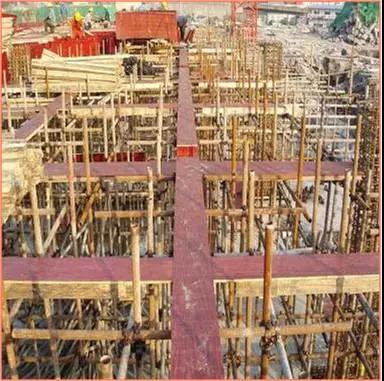 樓板模板:模板支撐體系經(jīng)過嚴(yán)格驗(yàn)算,并履行審批手續(xù),確保支撐體系的剛度、強(qiáng)度及穩(wěn)定性。嚴(yán)格控制模板起拱高度,跨度大于或等于4m的梁板按2/1000起拱。跨度8.4m樓板按1.5cm起拱。
