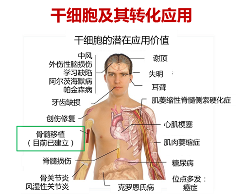 除此之外,利用干細胞進行免疫調節、關節修復以及神經退行性疾病治療,也已經進入臨床研究階段。這些重要應用的安全性及有效性還需經過更長時間的觀察。如確定沒有不良反應又能證明臨床有效,通過干細胞進行更多組織細胞的再生治療,將會從根本上治愈組織衰老和功能退化等疾病。