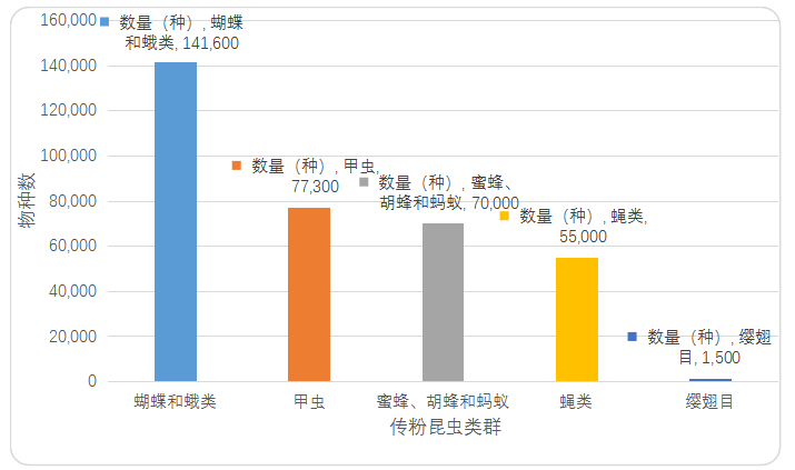 圖1. 主要昆蟲(chóng)類(lèi)群中傳粉昆蟲(chóng)種類(lèi)估計(jì) (Wardhaugh, 2015)