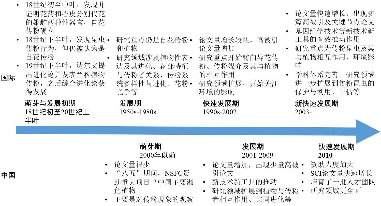 圖6傳粉生物學(xué)領(lǐng)域國(guó)際國(guó)內(nèi)發(fā)展歷程比較