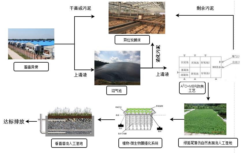 而針對(duì)我國(guó)規(guī)?;B(yǎng)殖場(chǎng)來說,近些年來大多采用固液分離—厭氧發(fā)酵—好氧曝氣傳統(tǒng)三段式工業(yè)處理模式處理養(yǎng)殖廢水,即理、化并用技術(shù)。該處理模式具有占地小、季節(jié)適應(yīng)性強(qiáng)以及可產(chǎn)出部分能源氣體(沼氣)等優(yōu)點(diǎn)。但同時(shí)也存在投入、運(yùn)行成本高,有機(jī)物和氮的去除不徹底,除磷工藝缺乏等缺點(diǎn)。隨著《畜禽養(yǎng)殖業(yè)污染物排放標(biāo)準(zhǔn)》(征求意見稿)的逐步落實(shí),現(xiàn)行的畜禽養(yǎng)殖廢水處理工藝大多已無法滿足新標(biāo)準(zhǔn)的排放要求。