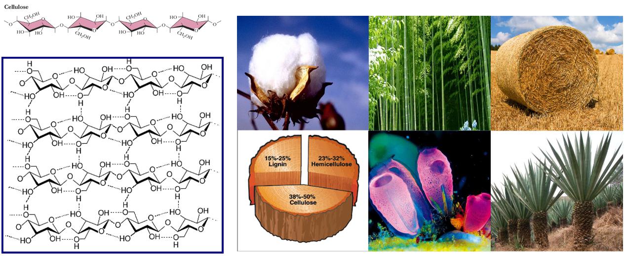 可降解高分子分兩大類,一類是人工合成的聚乳酸纖維;另一類是天然高分子,其中纖維素儲量最大。自然界通過光合作用一年會產生幾千億噸的纖維素(圖1),而人工合成的全球加起來才幾億噸。